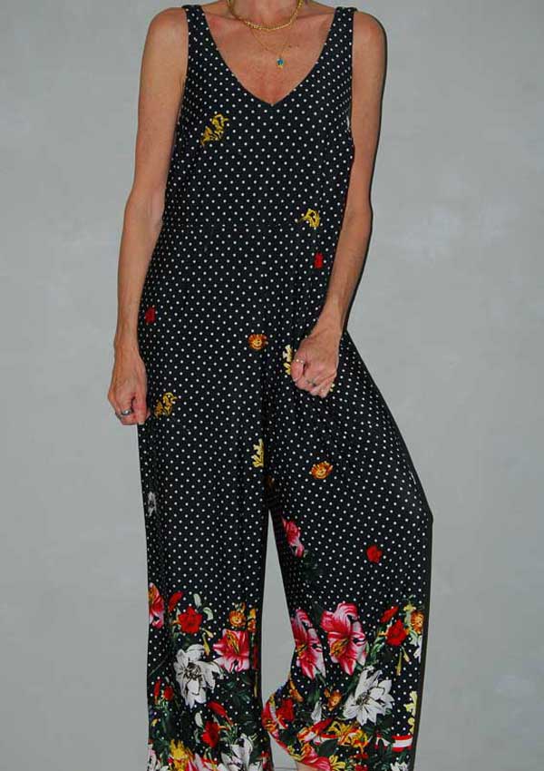 אוברול שחור עם נקודות לבנות ופרחים מושלם GOLBARY