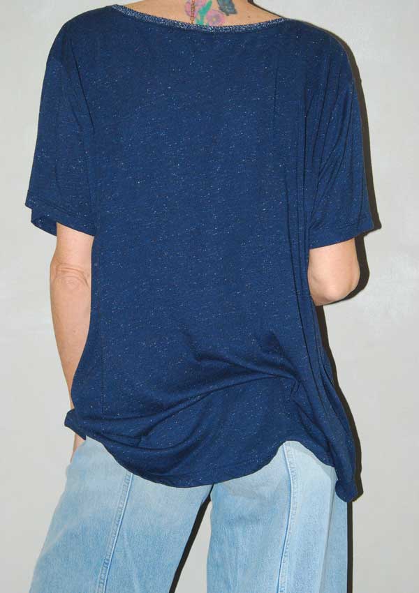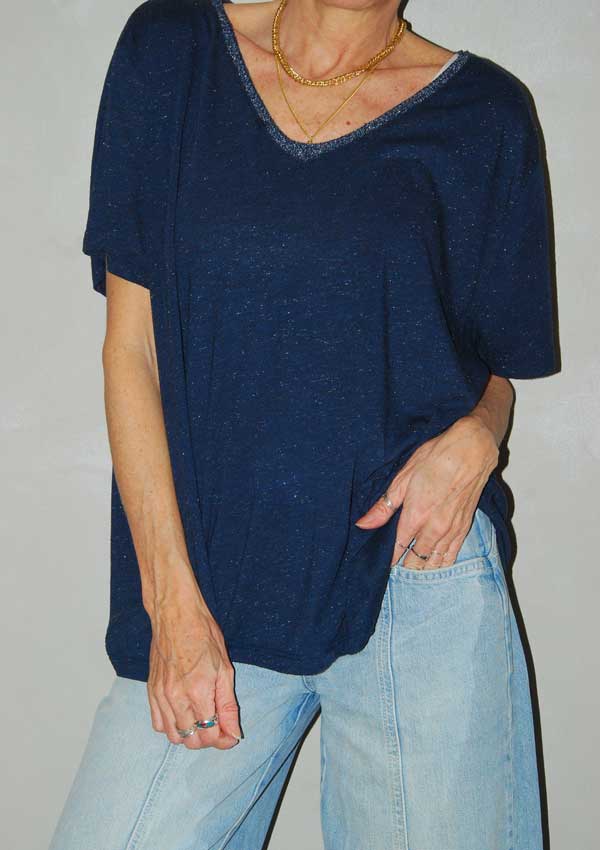 טי כחולה כהה עם נצנצים כסופים