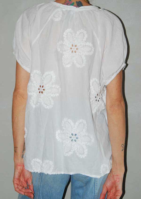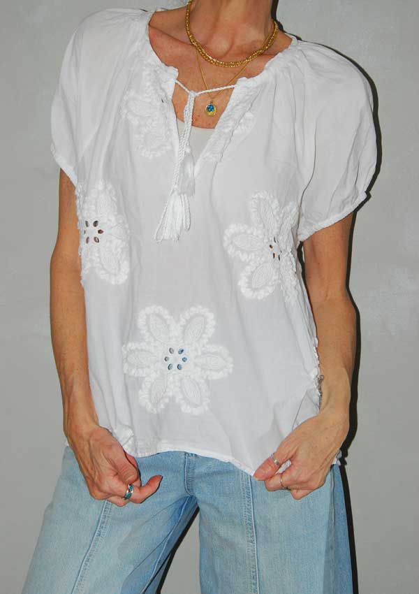 חולצה לבנה חמודה עפ פרחים גדולים רקומים