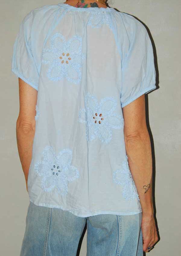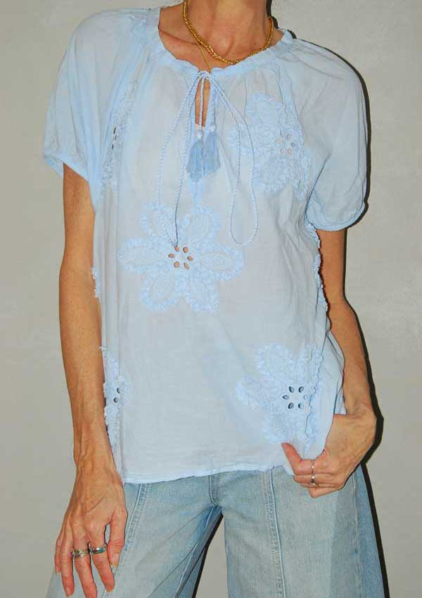 חולצה כחולה בייבי חמודה עפ פרחים גדולים רקומים