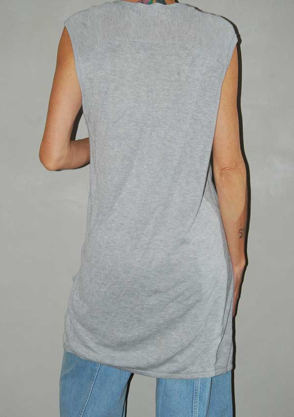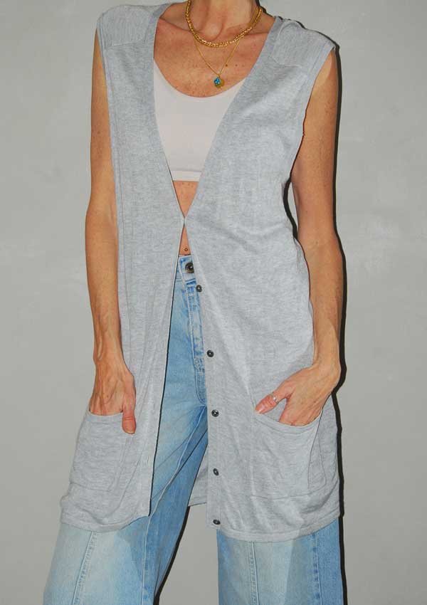 ווסט ארוך אפור עם כיסים וכפתורים מקדימה סריג דק