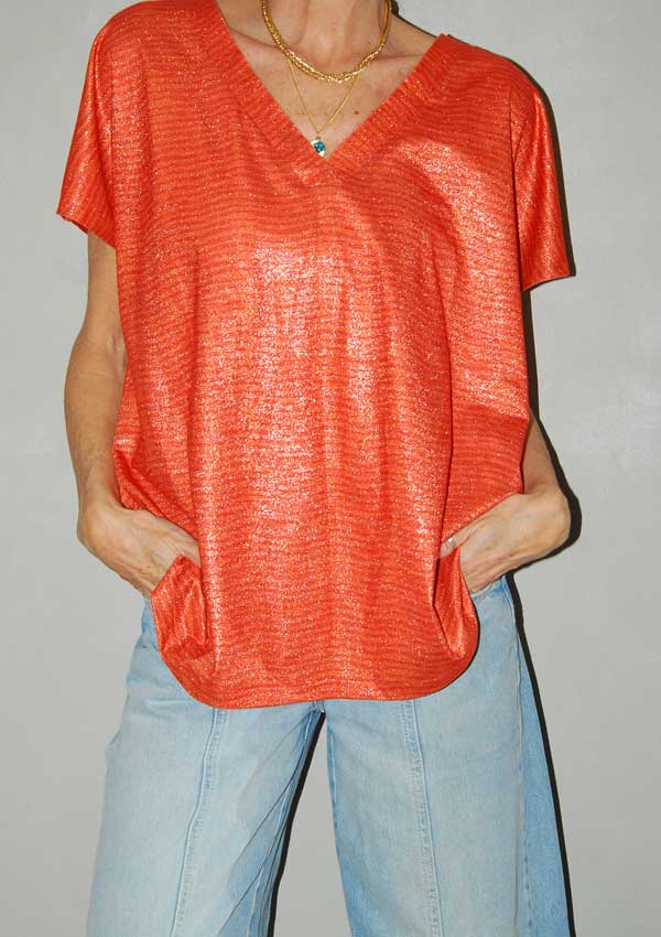 חולצה בצבע כתום עם פסים כתומים ונצנצים כסופים