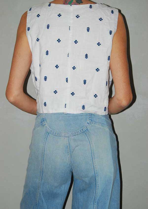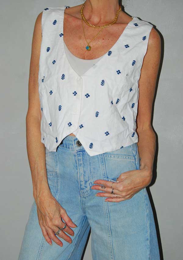 ווסט לבן חמוד ממש עם צורות רקומות כפתורים מקדימה