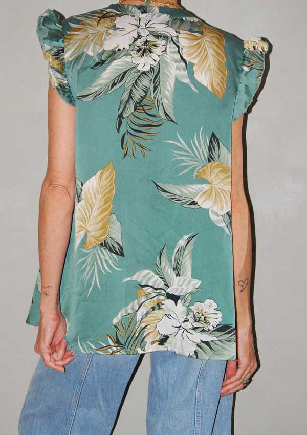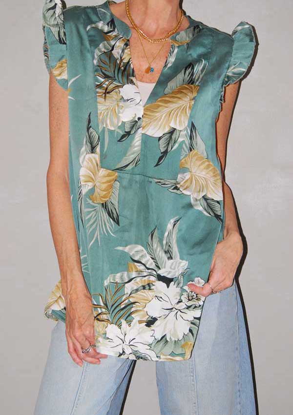 חולצה טרופית יפה בצבע מנטה ופרחים וענפים