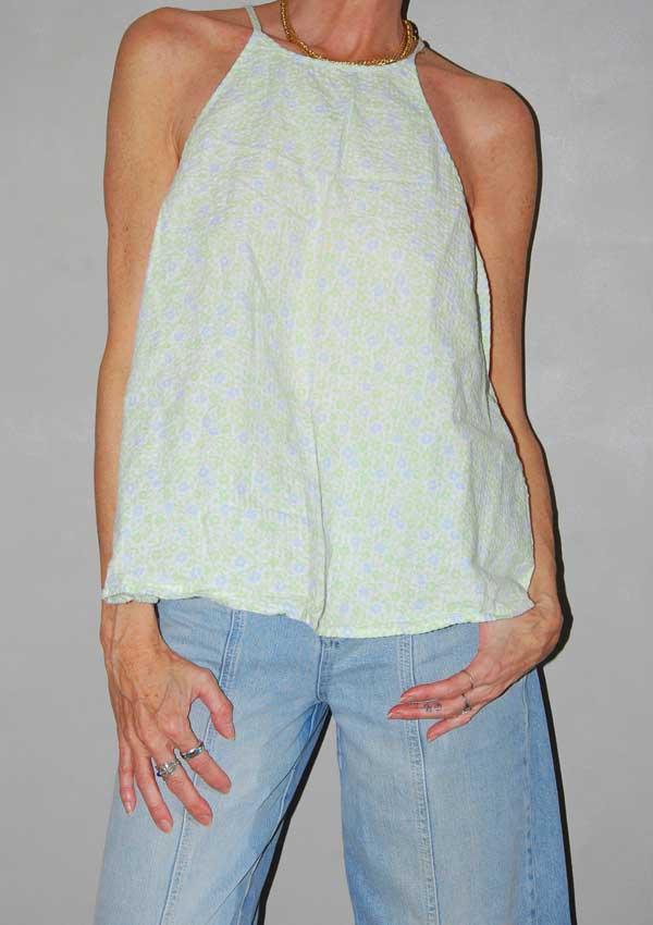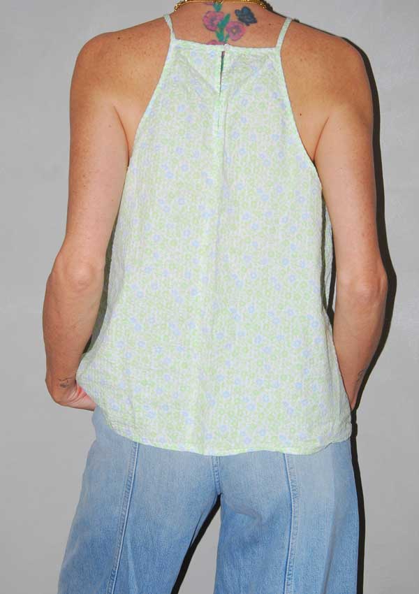 גופיה פרחונית עם פרחים ירוקים וכחולים