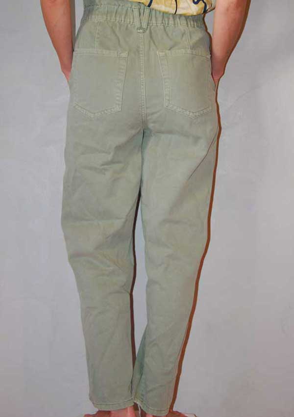 מכנסיי ג'ינס קלילים בצבע ירוק בהיר חאקי של STRADIVARIUS בחלק העליון כפתור וגומי