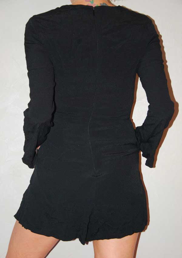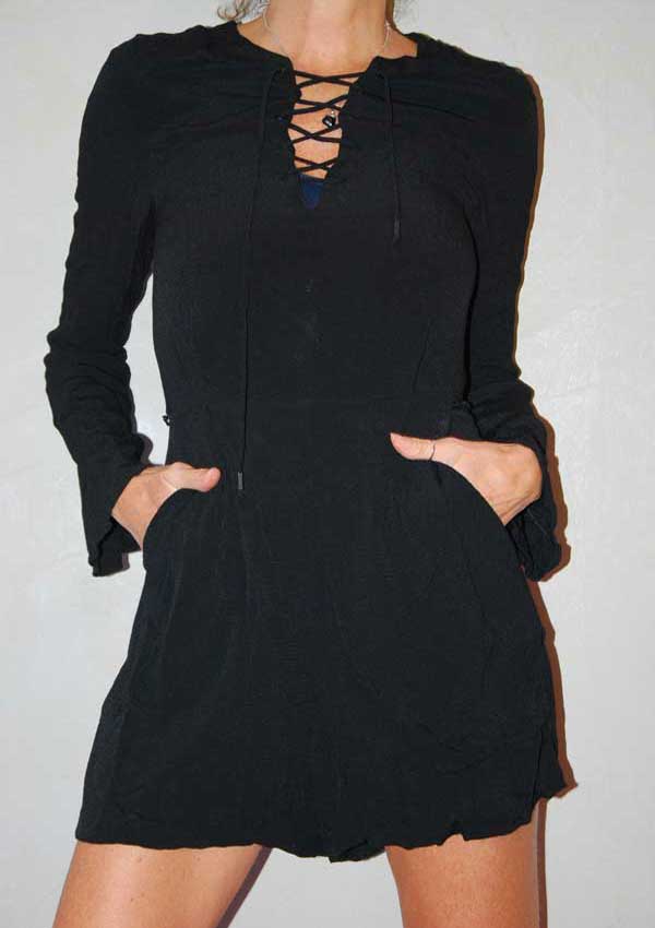 אוברול שחור חמוד עם סגירת זיגזג מקדימה כיסים בצד, מושלמת לחורף עם גרביון ומעיל