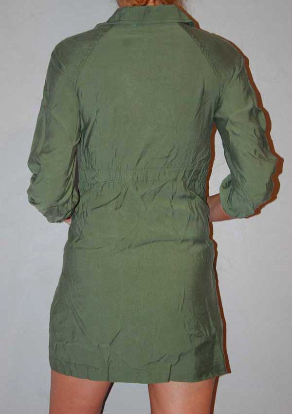 שמלה ירוקה עם פרחים לבנים קטנים מושלמת וקלילה עם שרוולים נפוחים