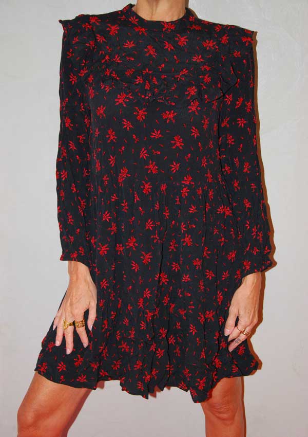 שמלה חמודה שחורה עם פרחים אדומים קטנים