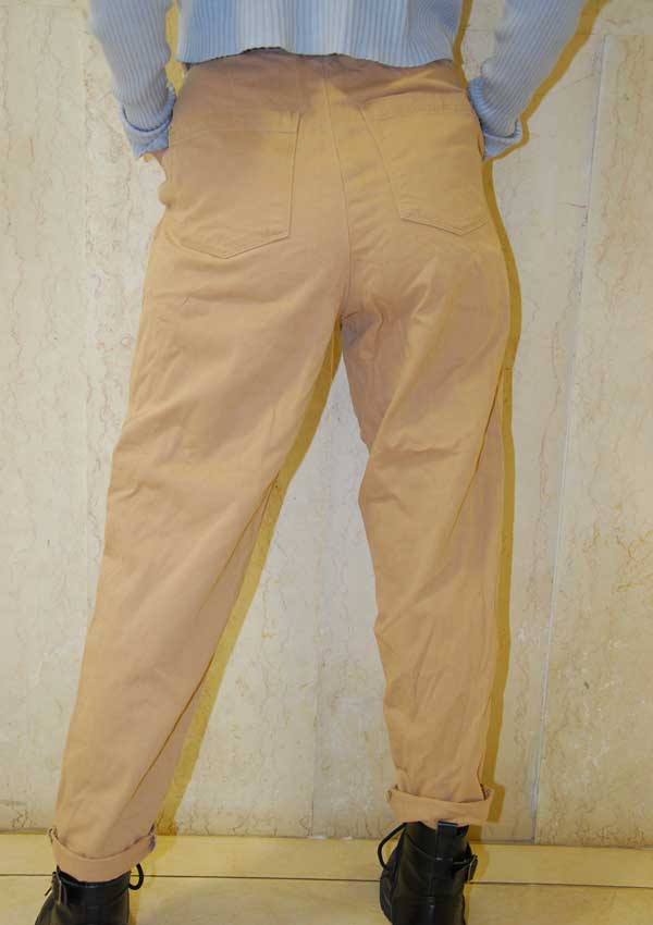 מכנסיים חומים חמודים עם גומי בחלק העליון גזרה גבוהה כיסים בצד