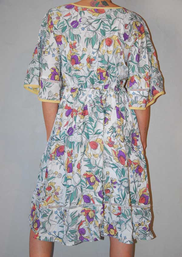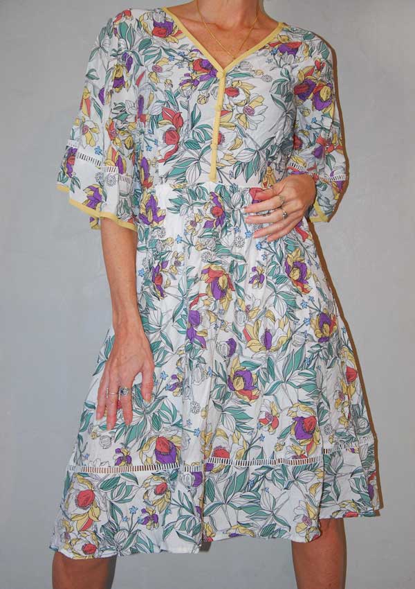 שמלת קיץ מושלמת ומחמיאה לגוף עם פרחים ועלים בצבעי קיץ שרוולים נפוחים