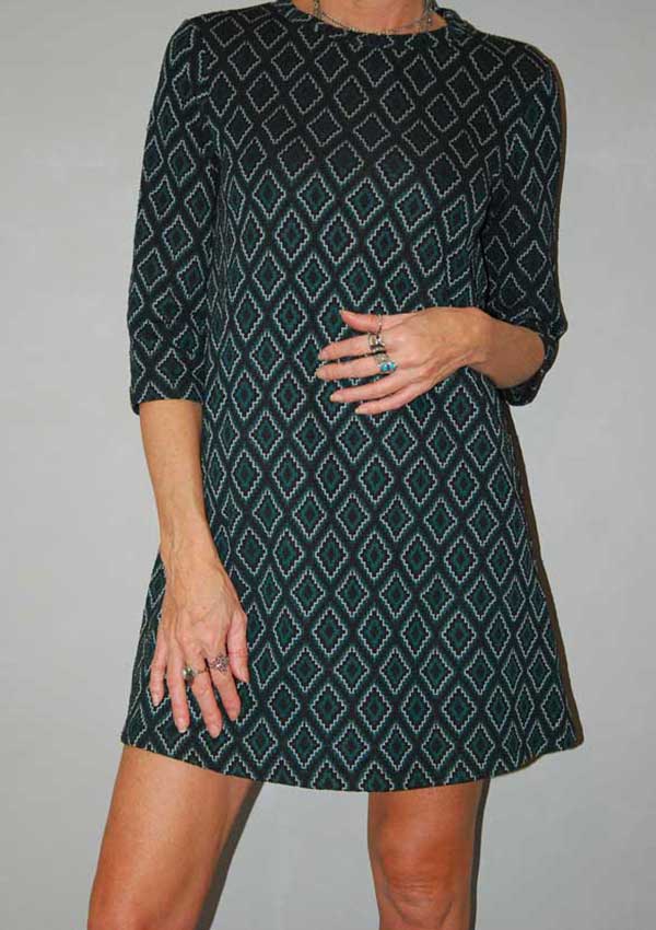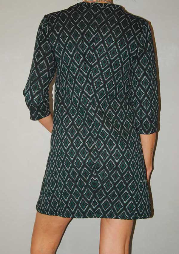 שמלת צורות בסגנון רטרו עם צורות בצבעים ירוק שחור לבן