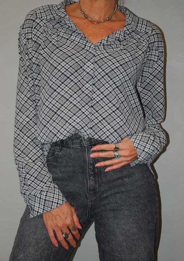 חולצה משובצת קלאסית שחור-לבן אפרתה