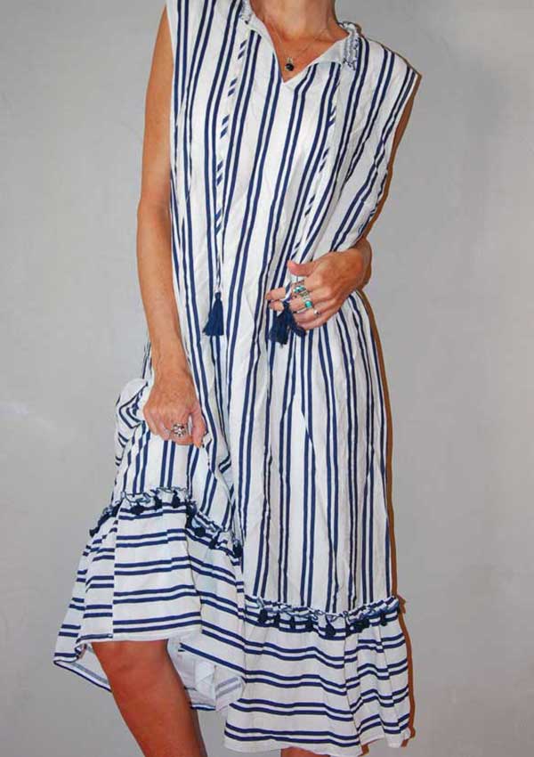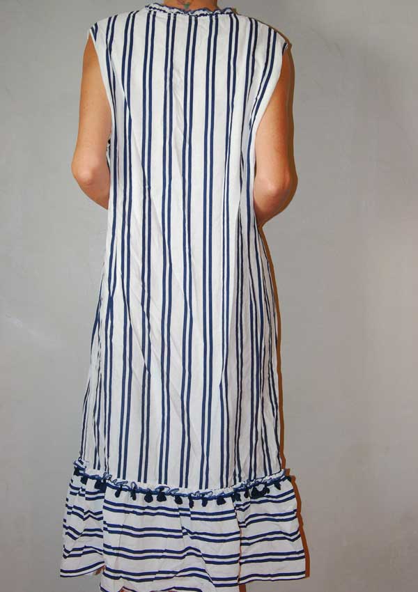 שמלת פסים כחול כהה-לבן מיוחדת מקסי עם קשירה בצוואר MEKIMI