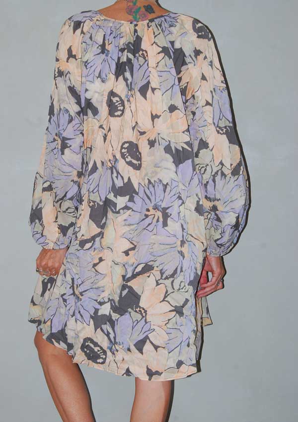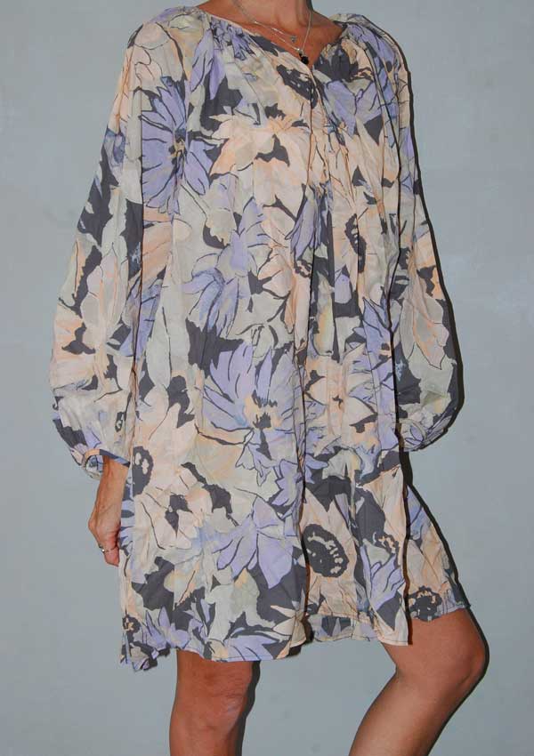 טוניקה מכופתרת בצבע ג'ינס בהיר כותנתית ונעימה עם פרחים רקומים בחלק התחתון