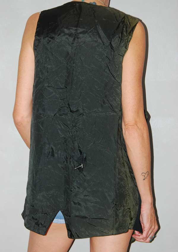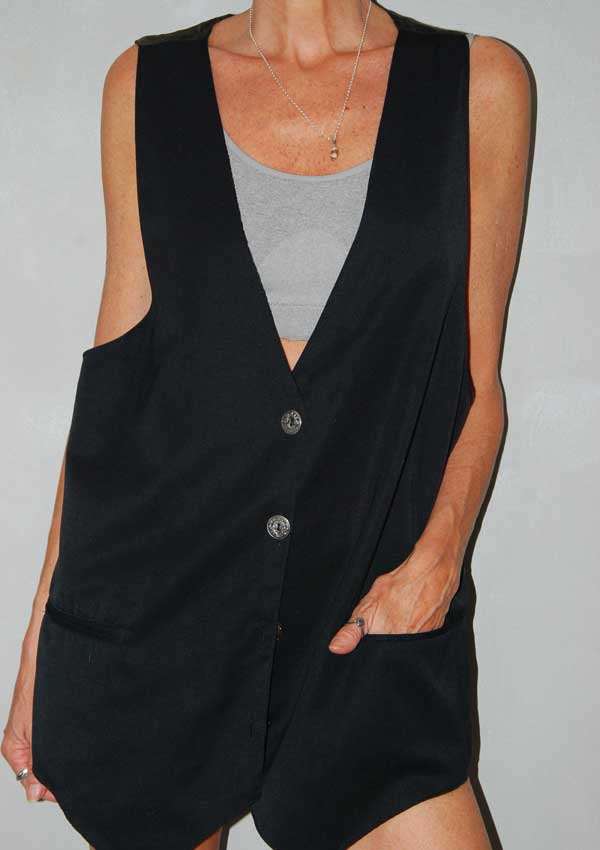 ווסט שחור עם פסים לבנים כפתורים מיוחדים וכיסים לא אמיתיים מקדימה