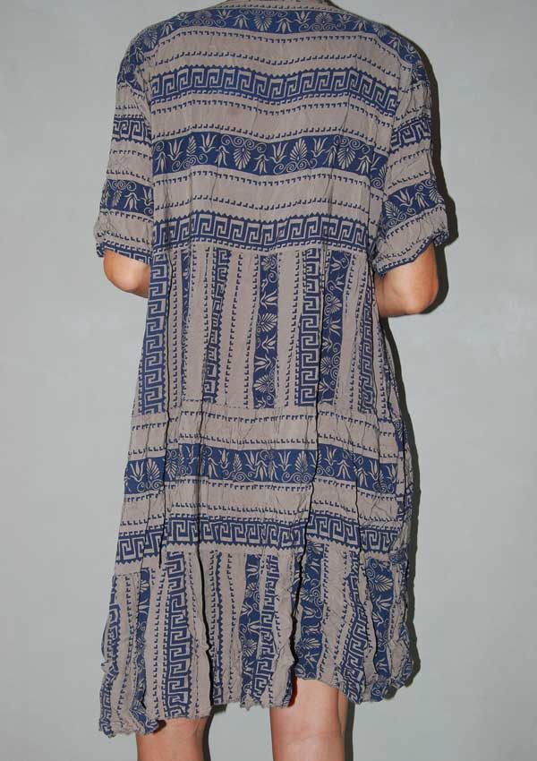 שמלה כותנתית ונעימה עם צורות בצבע חום וכחול כהה OVERSIZED לכן תהיה טובה לכל המידות