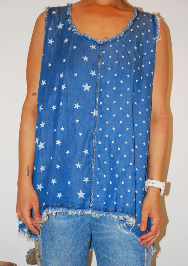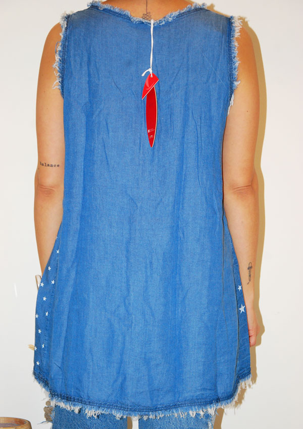 חולצת טוניקה ג'ינס כוכבים MADE IN ITALY חדש עם טיקט