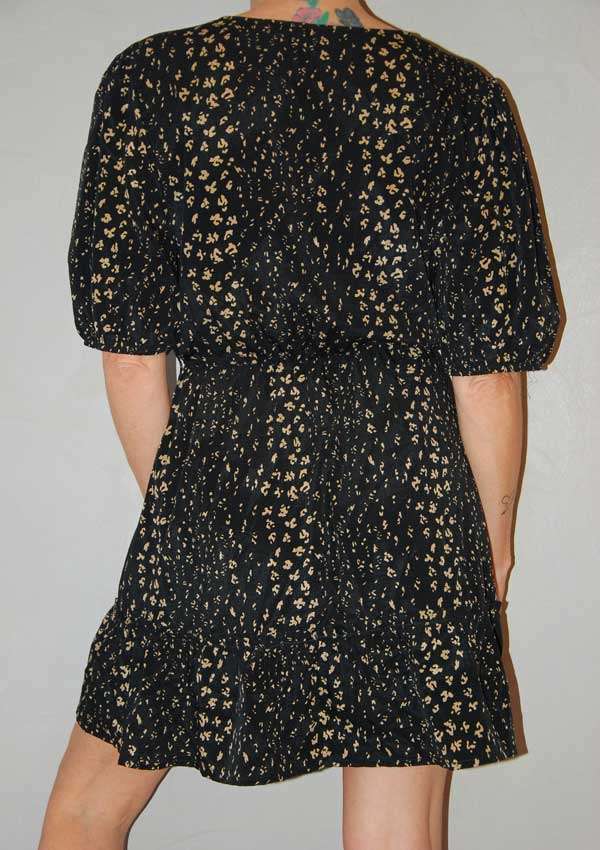 שמלה חמודה בצבע שחור עם כתמים חומים גומי במותן סיומת חצאית חמודה
