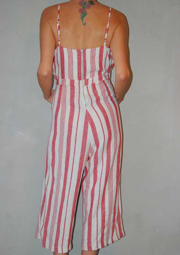 אוברול מושלם פסים בצבעי חמרה-לבן קשירה בחזה וגב פתוח כיסים בצד ריץ' רץ' בגב