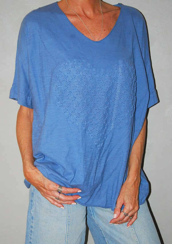 חולצה MADE IN ITALY עם לב כוכבים מקדימה מידה גדולה - תהיה טובה למידות קטנות יותר כ OVERSIZED