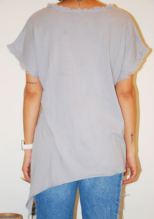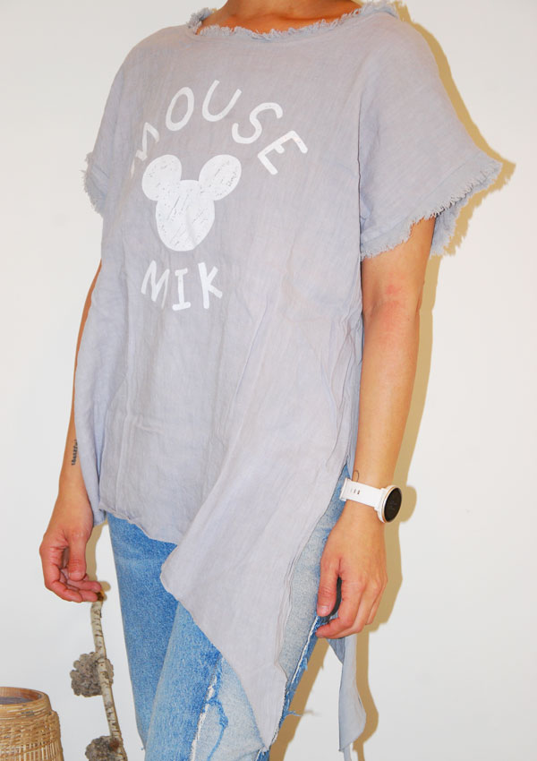 חולצת טי אפורה עם מיקי מאוס אסימטרית בצד