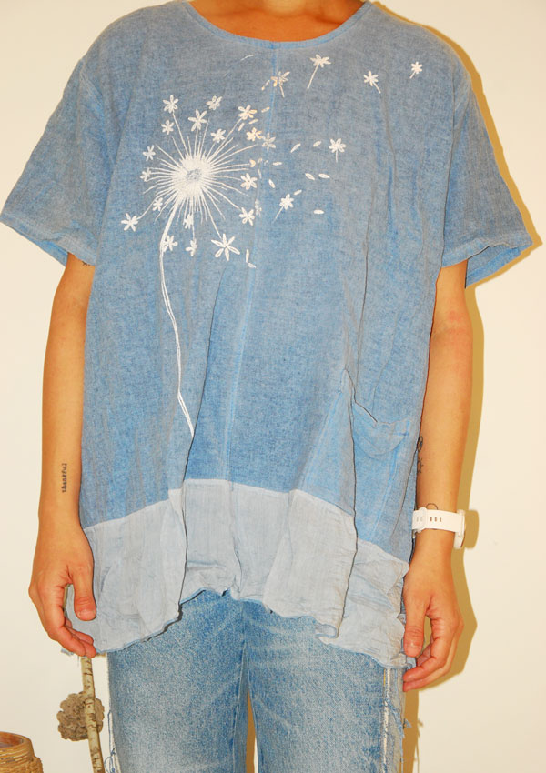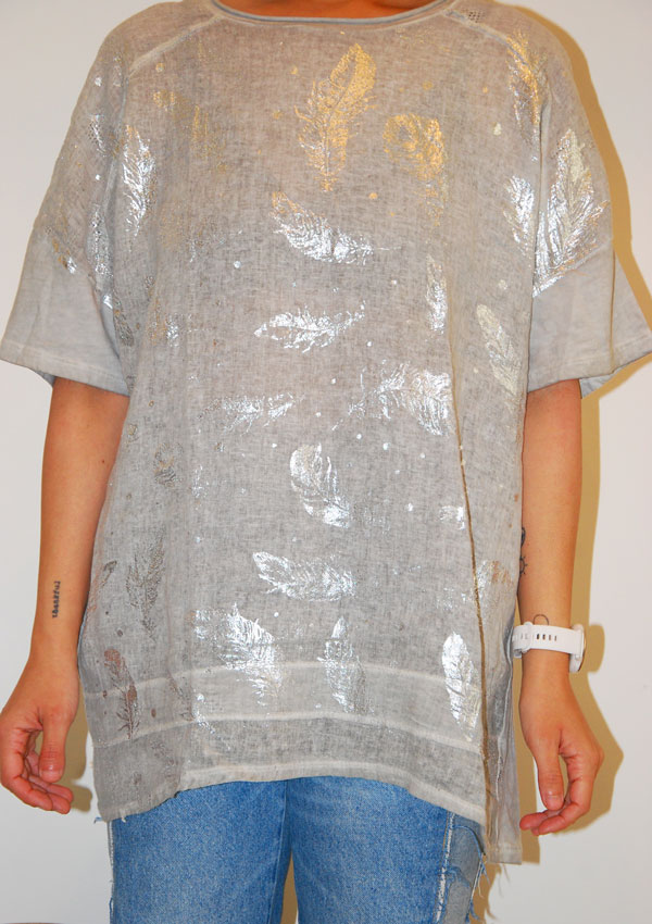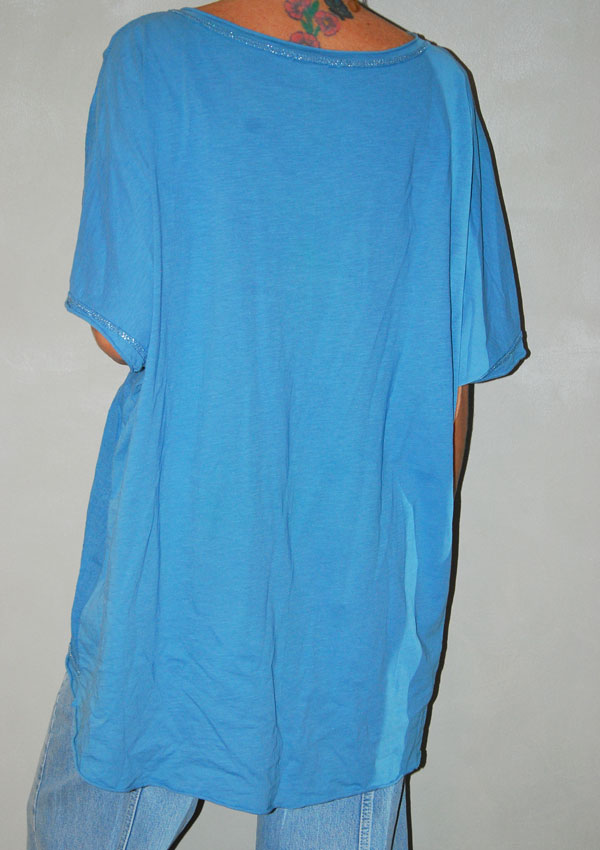 חולצה בצבע ג'ינס עם ציור של PEACE עם אבנים קטנות MADE IN ITALY