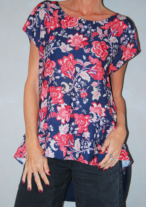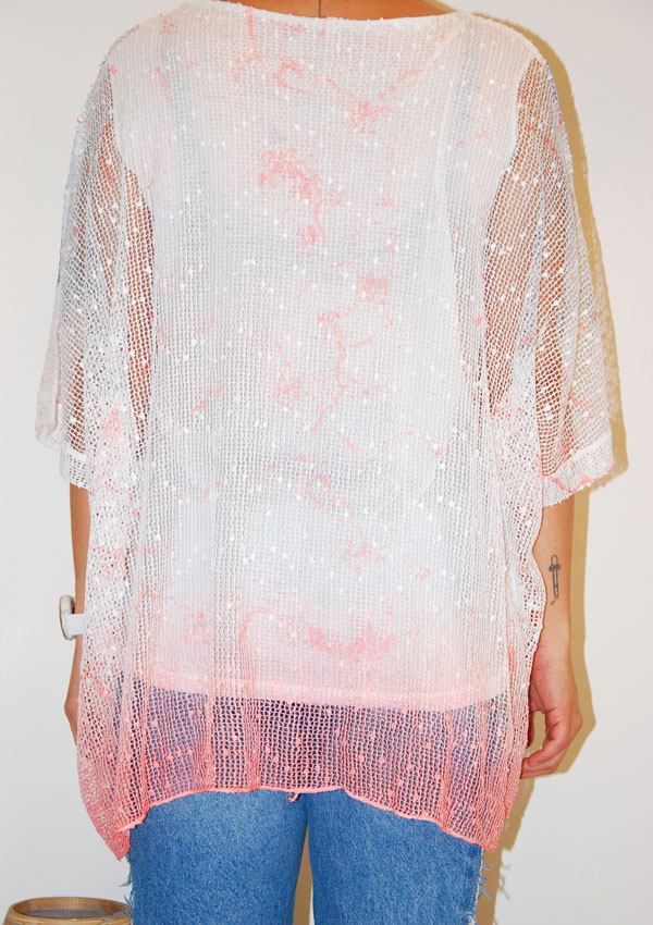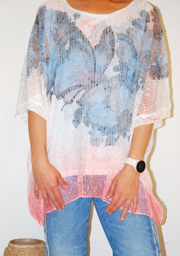 חולצת רשת עם תחתית וציורים של פרחים ופרפרים