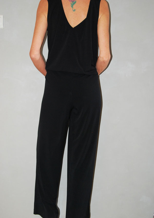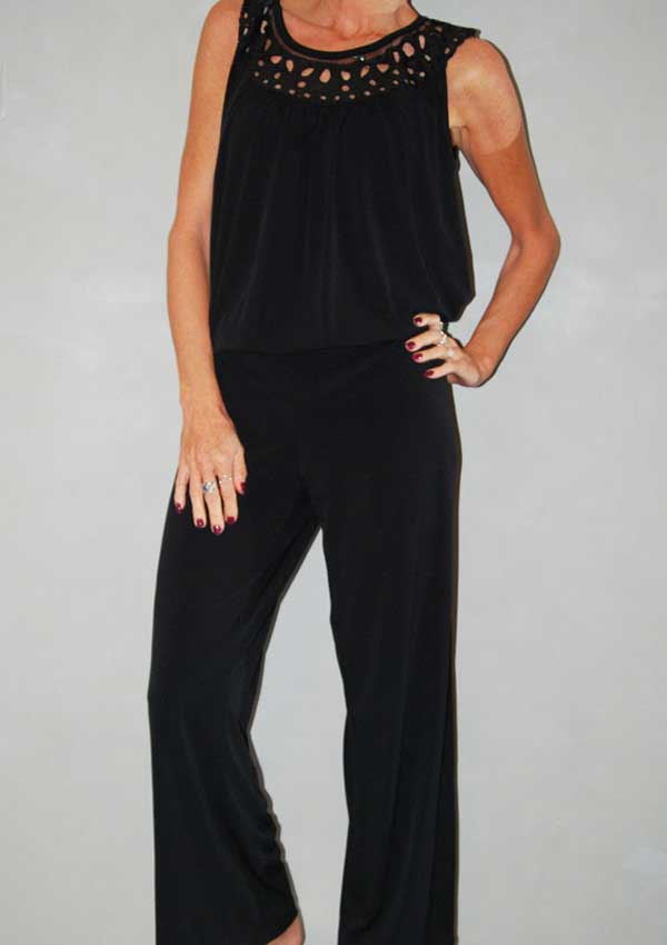 אוברול שחור עם פייטים קטנים שחורים בחלק העליון וגומי במותן