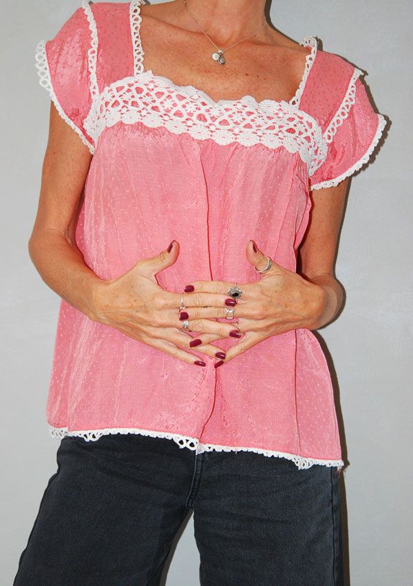 חולצה חמודה בצבע ורוד עתיק עם צורות רקומות בחלק העליון בשרוולים ובתחתית