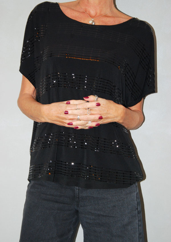 חולצה שחורה עם נצנצים מרובעים שחורים GOLBARY