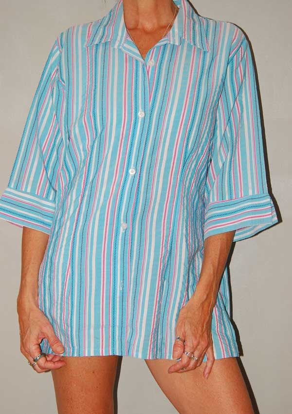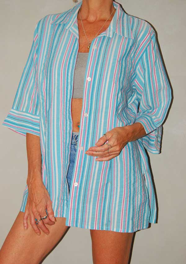 חולצת פסים מכופתרת בצבעי כחול-לבן-ורוד
