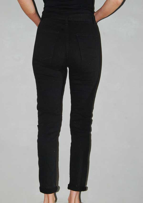 ג'ינס שחור גזרת סיגר BERSHKA חגורה מצורפת