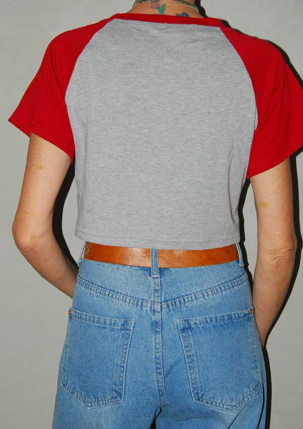 חולצה אמריקאית חמודה CROP בצבעי אפור אדום
