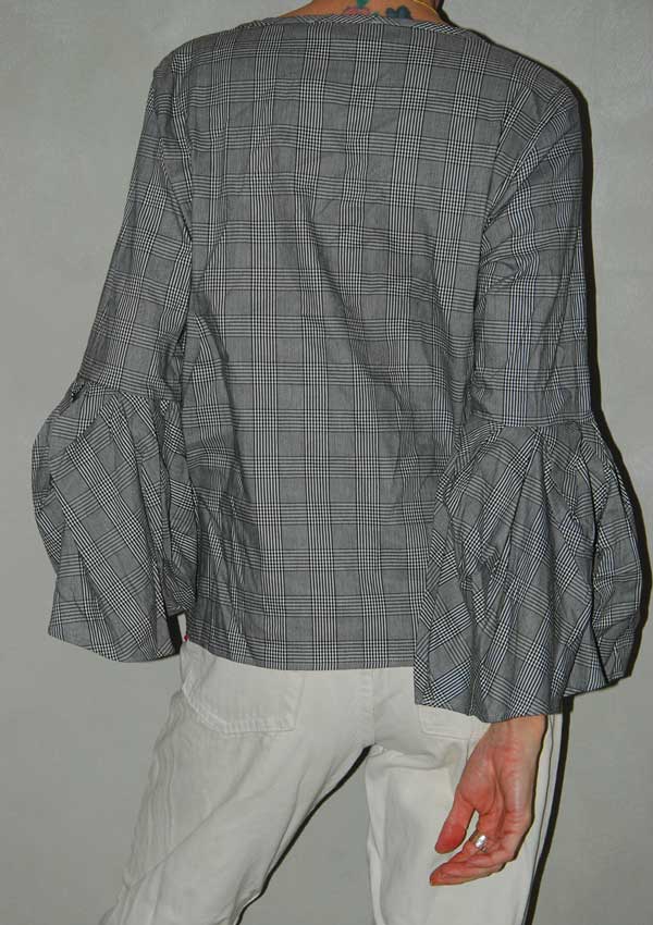 חולצה משובצת אפור-שחור-לבן עם שרוולים מנופחים