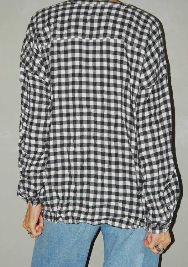 חולצה מושבצת נעימה שחורה-לבנה עם פרחים רקומים מקדימה