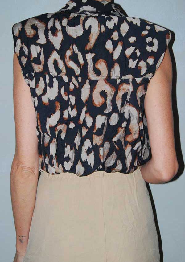 חולצה נמרית עם כפתורים מקדימה וכריות בכתפיים שניתנות להורדה