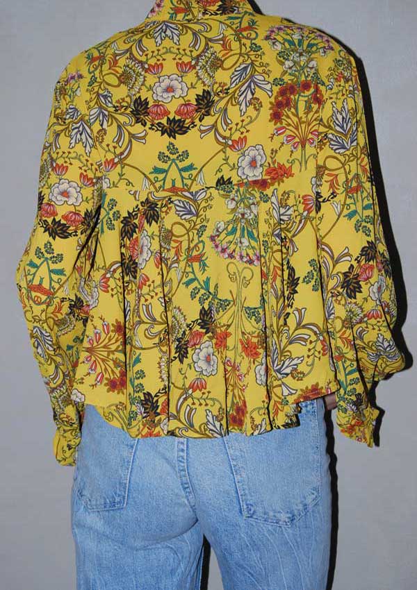 חולצה בצבע חרדל עפ פרחים צבעוניים קשירה בצוואר וגזרה חמודה OVERSIZED