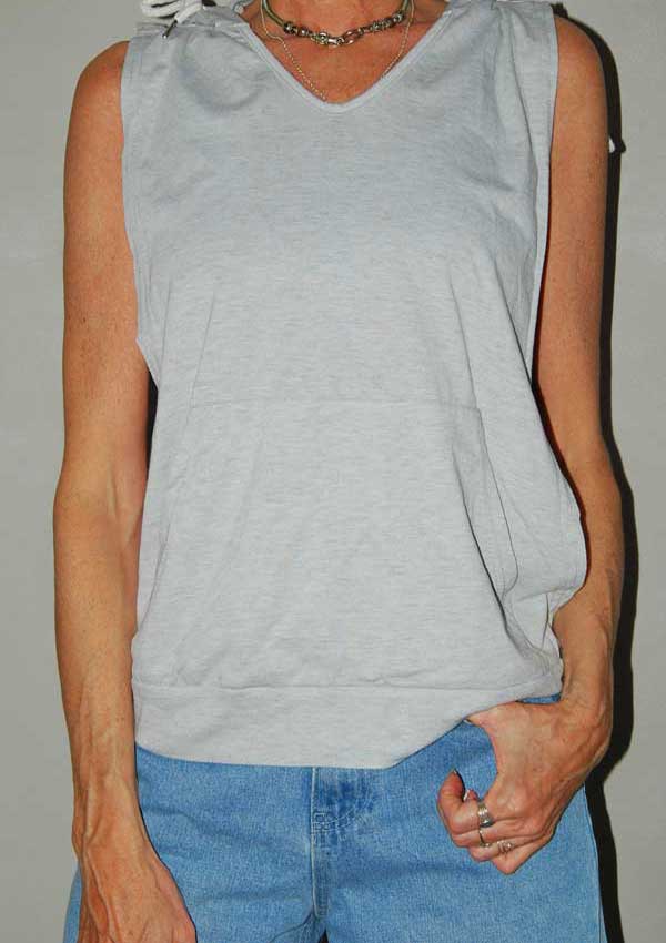 חולצה דקה אפורה ונעימה עם מפתח צידי וקפוצ'ון