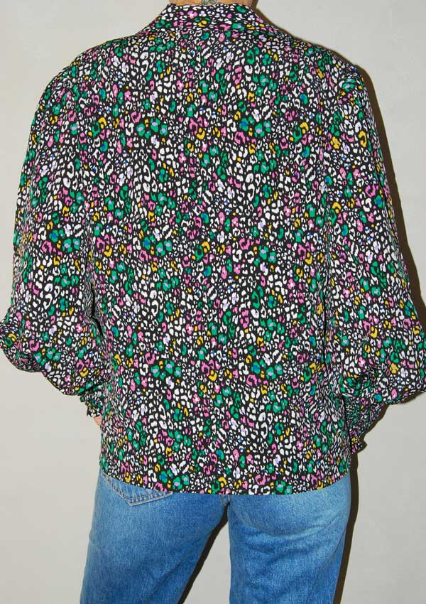 חולצה חמודה עם שרוולים מנופחים וכתמי צבע של ירוק לבן ורוד TOPSHOP