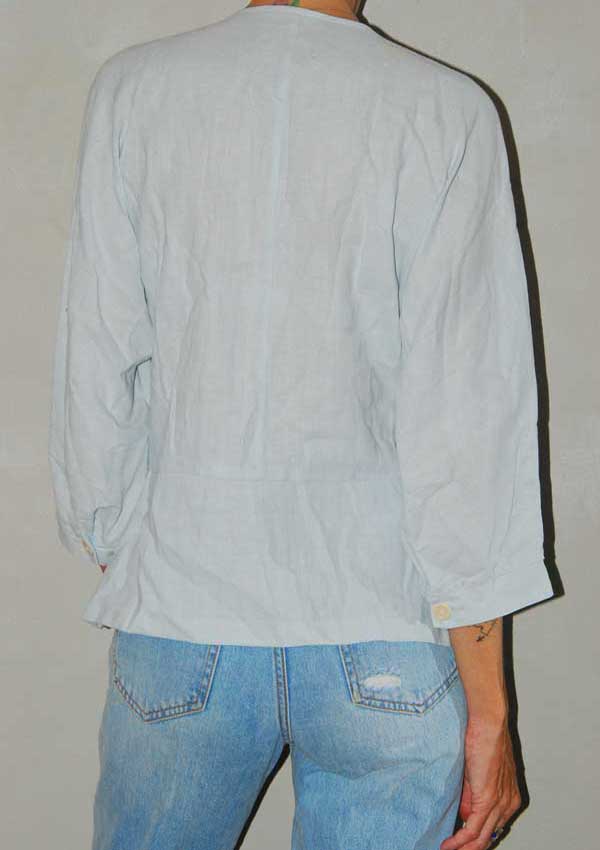 חולצת ג'ינס עם צורות רצועות וכפתורים לאורך הקדימה