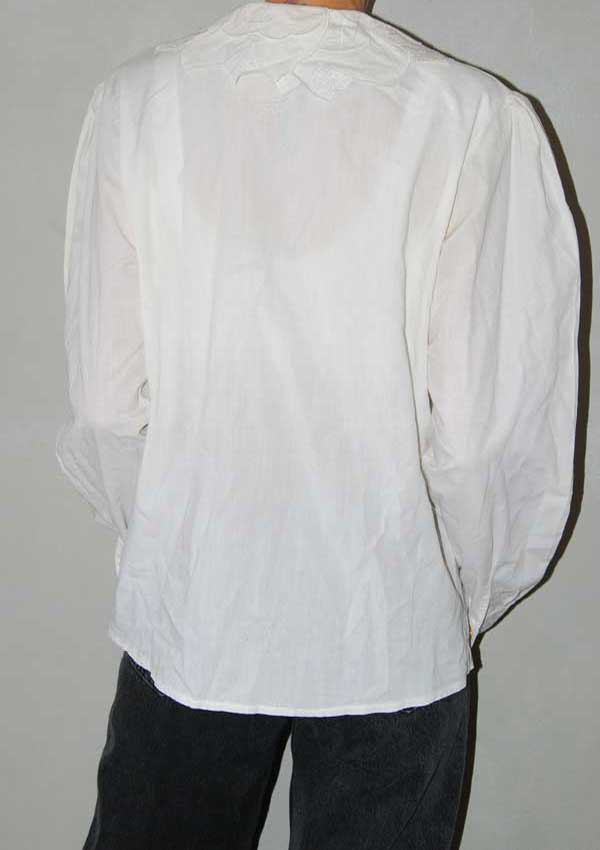 חולצת וינטג' לבנה משנות ה-90, עם צווארון מאוד מיוחד שרוולים מנופחים וכפתורים לאורך הקדימה