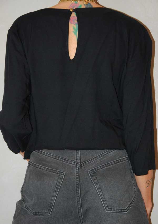 חולצה שחורה עם צורות לבנות גומי בחלק התחתון