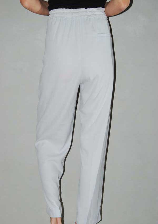 מכנסיי סיגר בצבע אפור-קרם בהיר גומי בחלק העליון עם קשירה וכיסים בצד