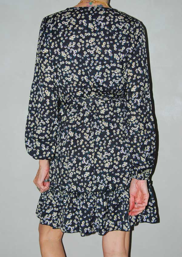 שמלה פרחונית חמודה גומי וקשירה במותן