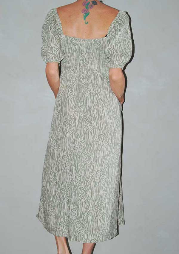 שמלה עם צורות בצבעי קרם וירוק גומי בחזה והכי חשוב כיסים בצד – מושלמת לקיץ