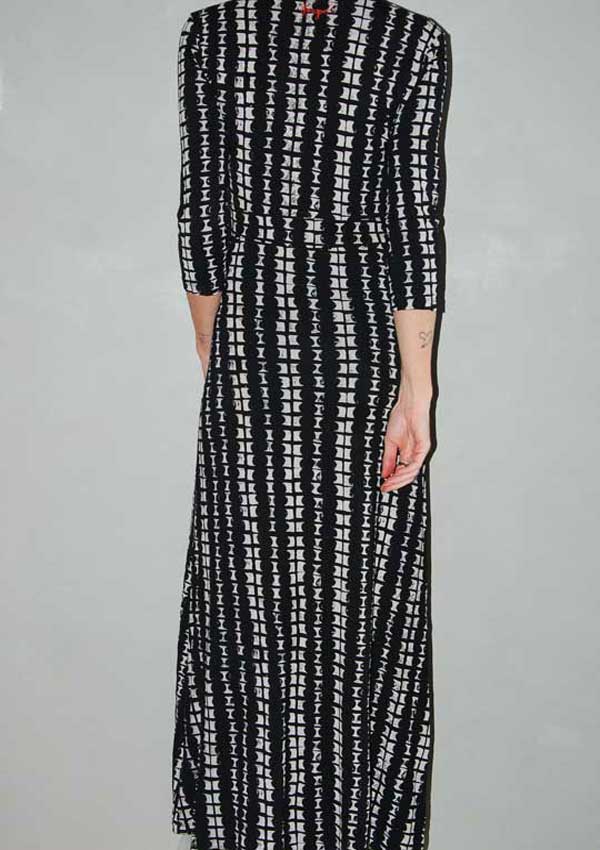 שמלת מקסי נעימה שחורה עם צורות ופרחים במותן